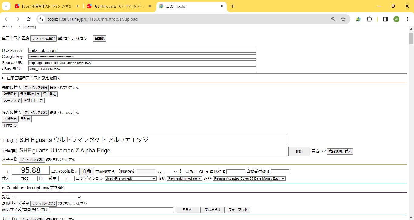 メルカリ、ヤフオク、アマゾン、その他多くのサイトからeBay APIまたはSeller Hub/Reports経由で出品、価格と在庫を管理します。