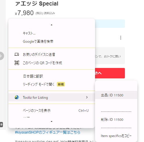 Chrome拡張「Tooliz for Listing」一部機能追加